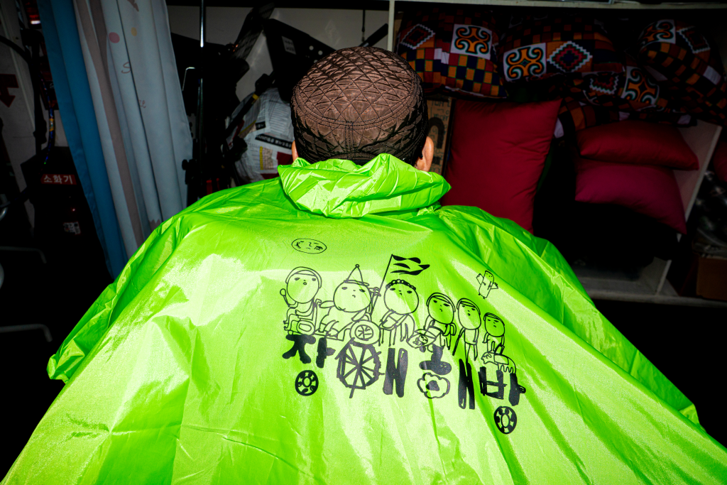 등판에 ‘장애 해방’ 큰 글씨와 함께